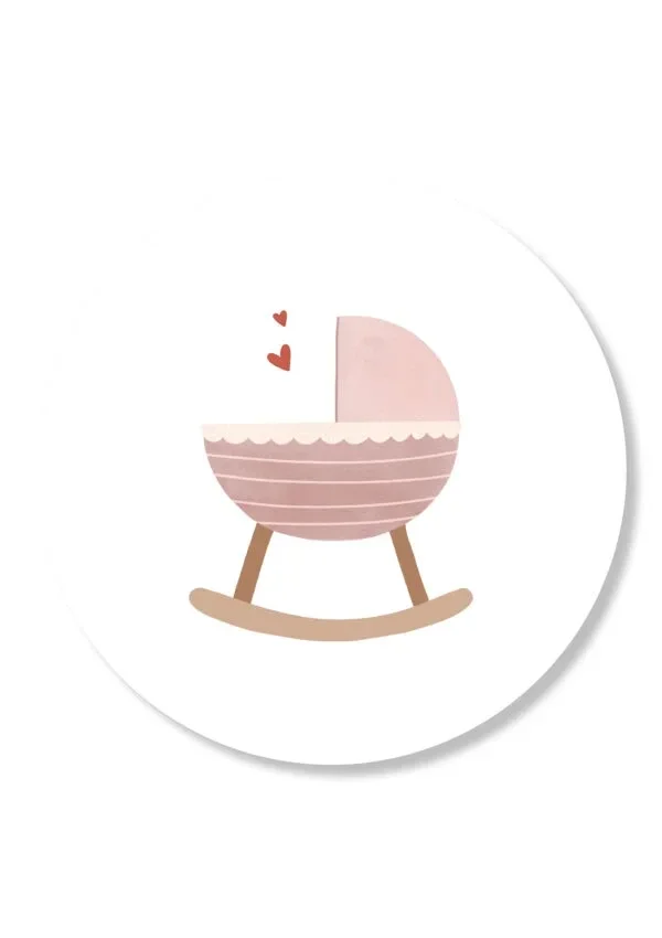 Wenskaart rond - Wiegje roze